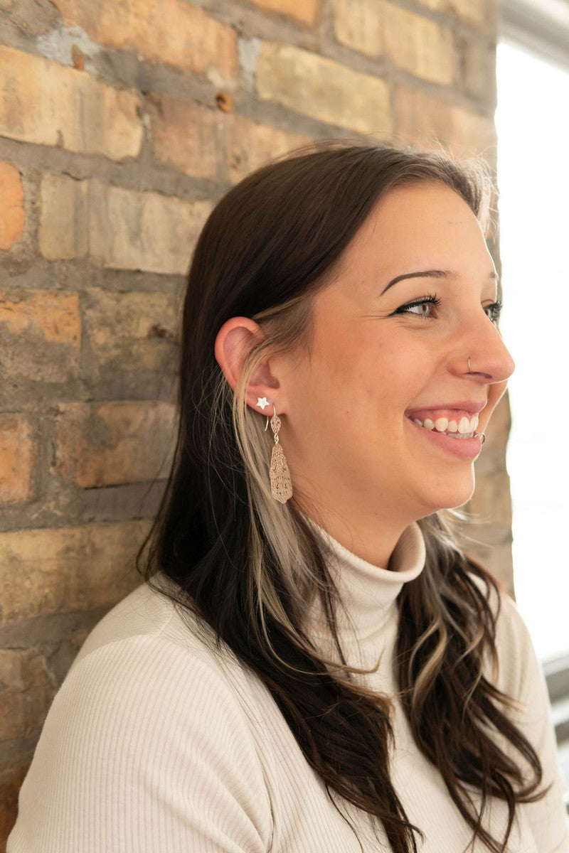 Calling all starry-eyed dreamers and moon worshipers! Introducing Tiny Sky Studs, the perfect everyday accessory that will keep you connected to the celestial wonders above. Crafted with love and simplicity in mind, these sterling silver studs are a minimalist's dream come true. Pair them with other pieces from our stunning silver collection for a look that will make your friends green with envy. Rest assured, these earrings are made from recycled metal, so you can rock them guilt-free! And don't forget to discover the inspiring stories of the talented women behind our India Collection. Join the sky-gazing trend and never, ever feel alone again.