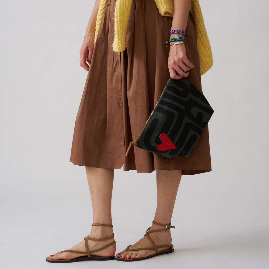 Our XLarge Convertible pouch offered in our beloved Safari Kuba print with a red beaded heart. This pouch can be converted into a cross-body bag when used with our removable strap. Note: Strap sold separately, here.