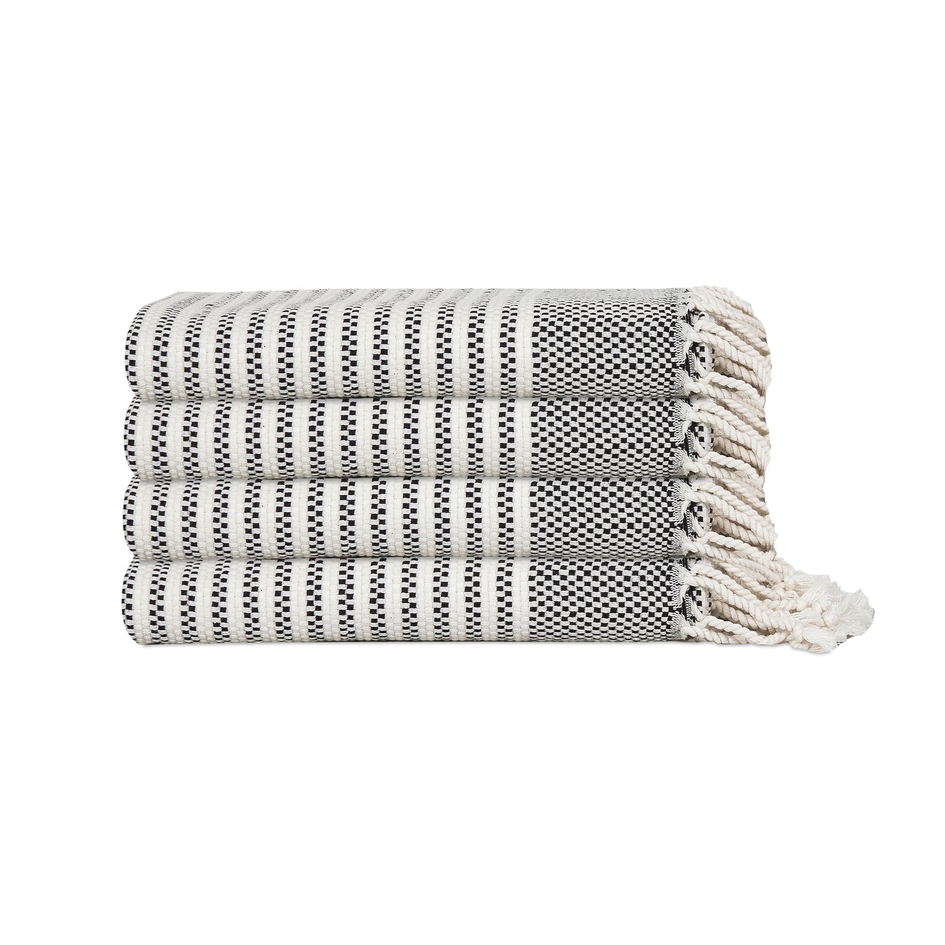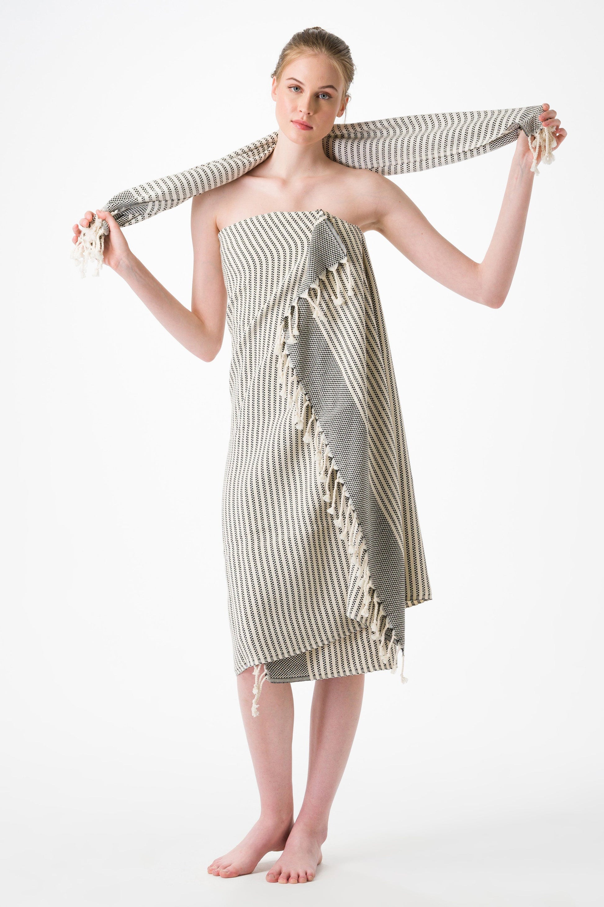 The Zipper Turkish Hand / Kitchen Towel Bundle is handwoven from the finest Turkish cotton fibers. It has black dots on natural cotton color. The fringes are all hand tied with exposed threads adding to the heirloom appeal of this towel.