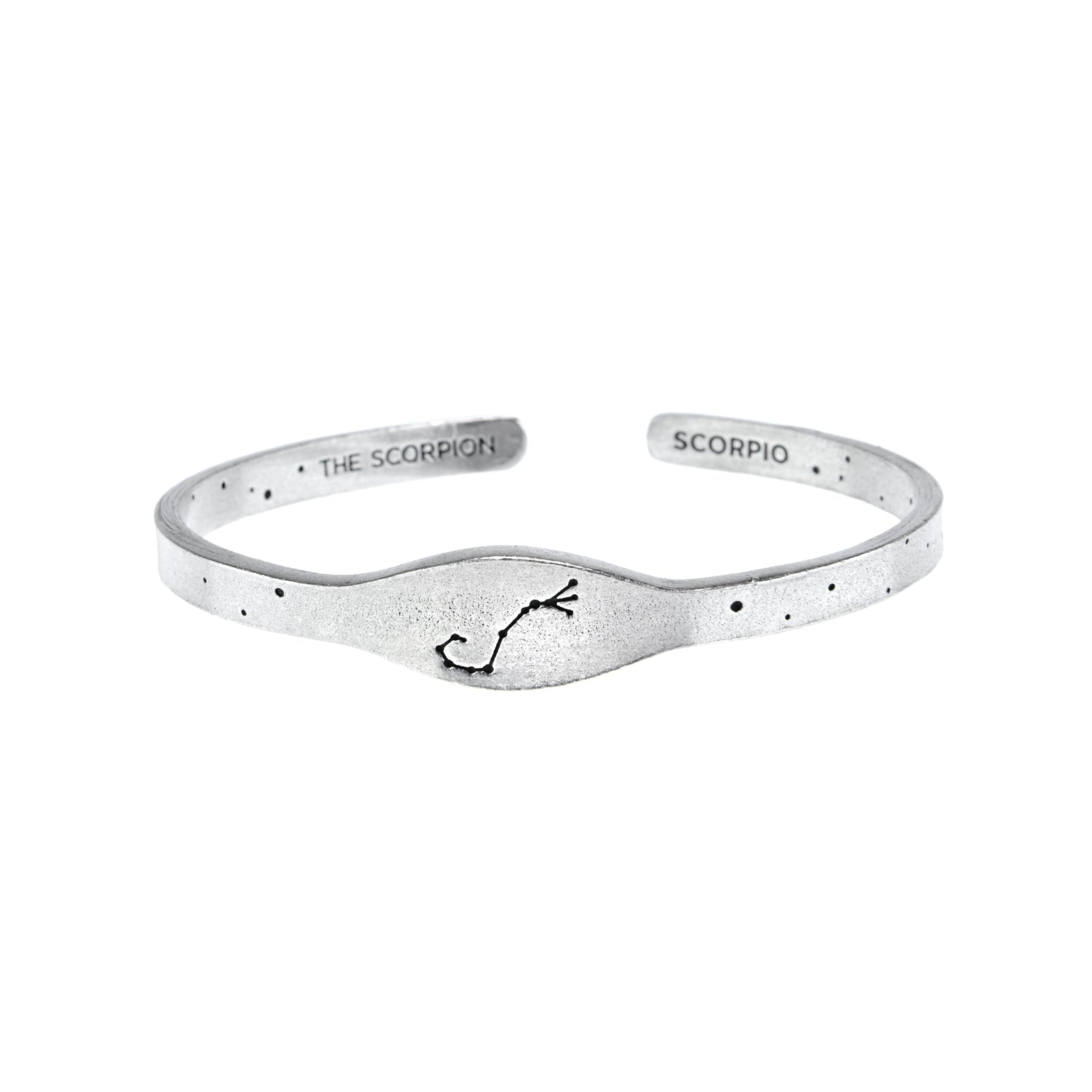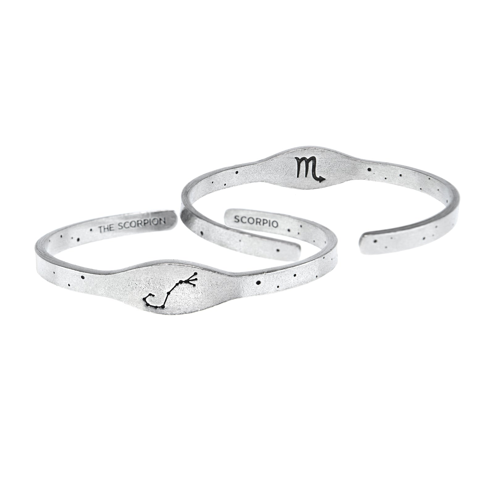 A Zodiac Cuff Bracelet is the perfect way to show off your unique personality. The Scorpio sign is on the inside while the Scorpio constellation is on the outside. The scorpion is also inscribed on the inside.